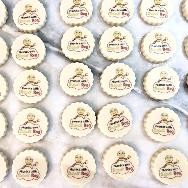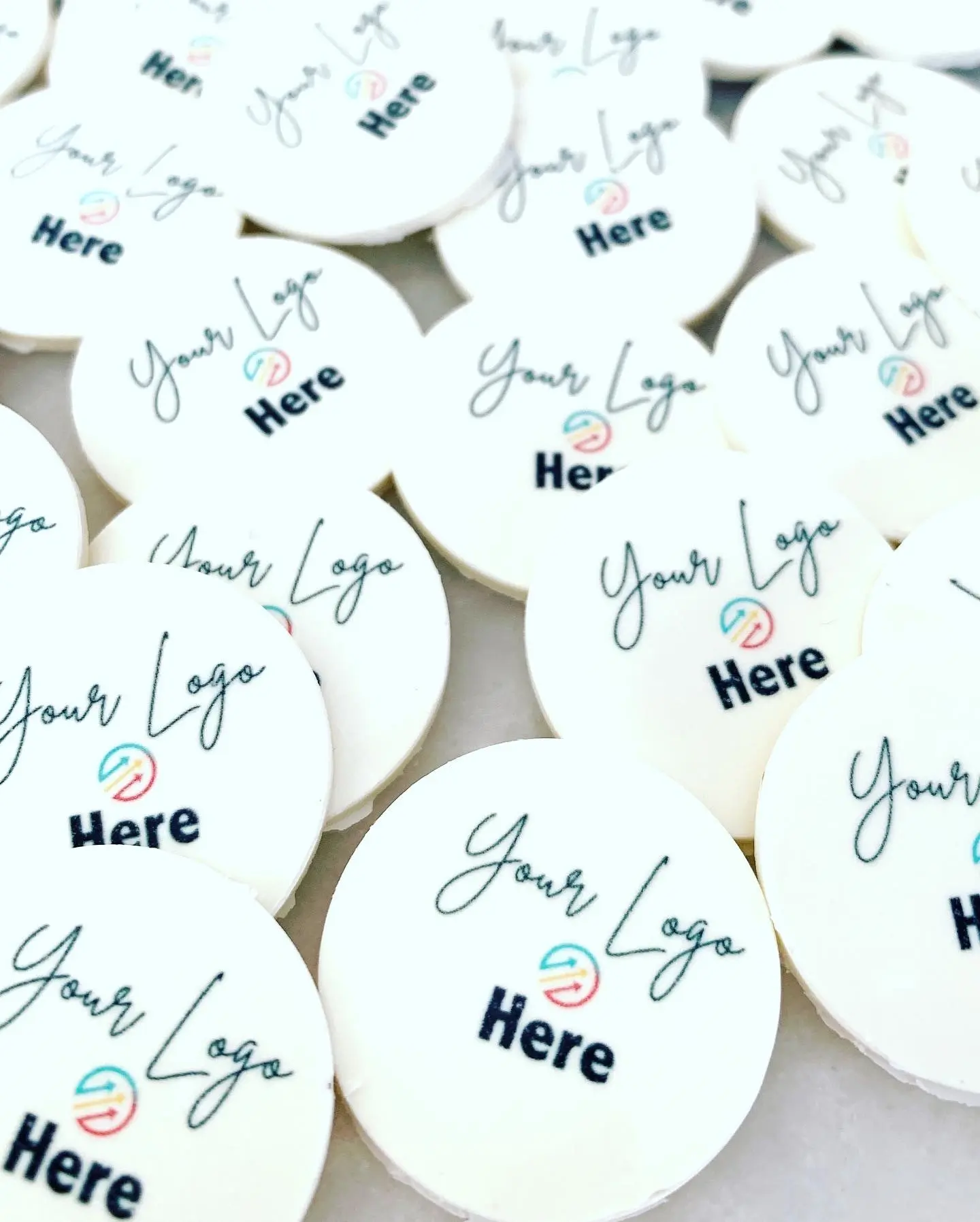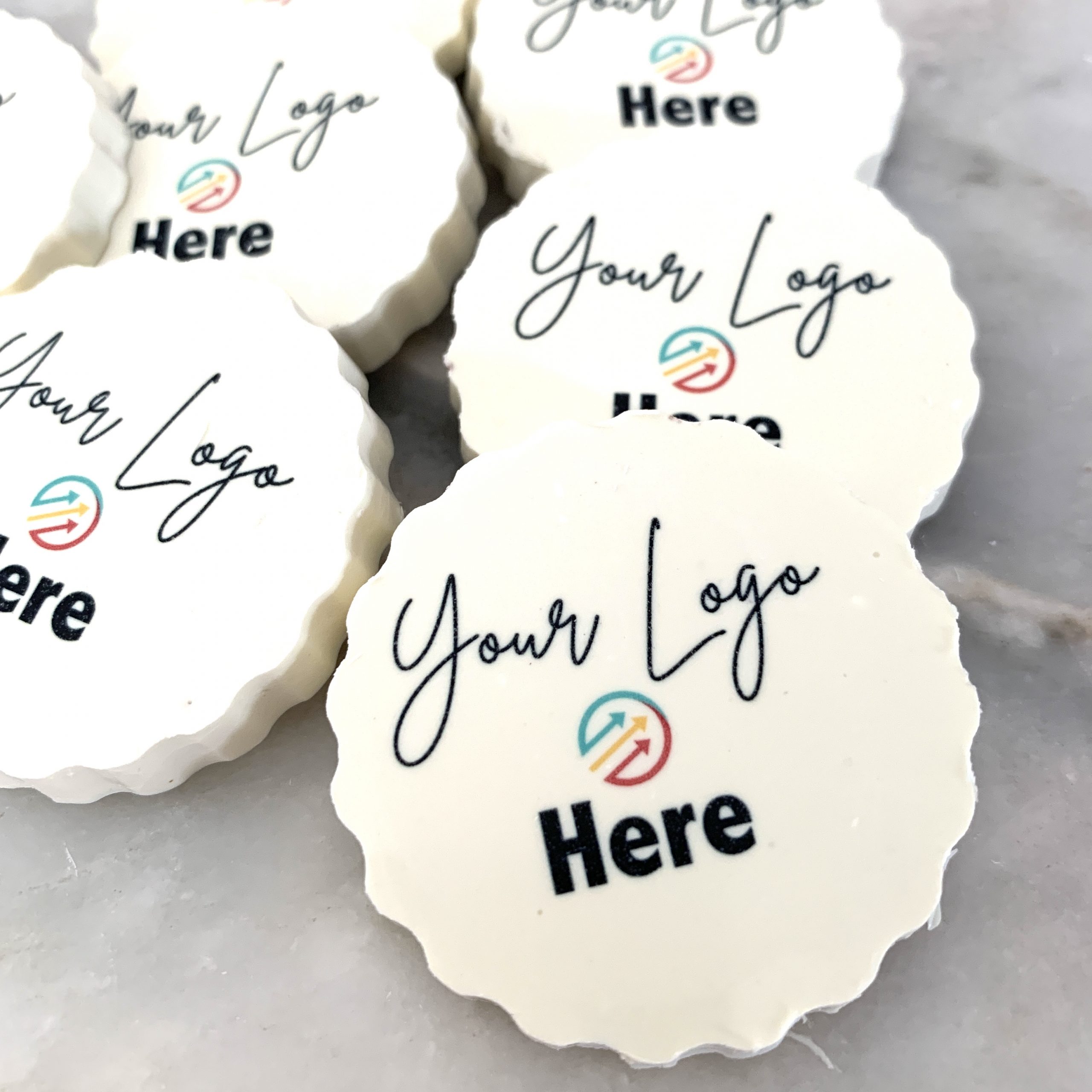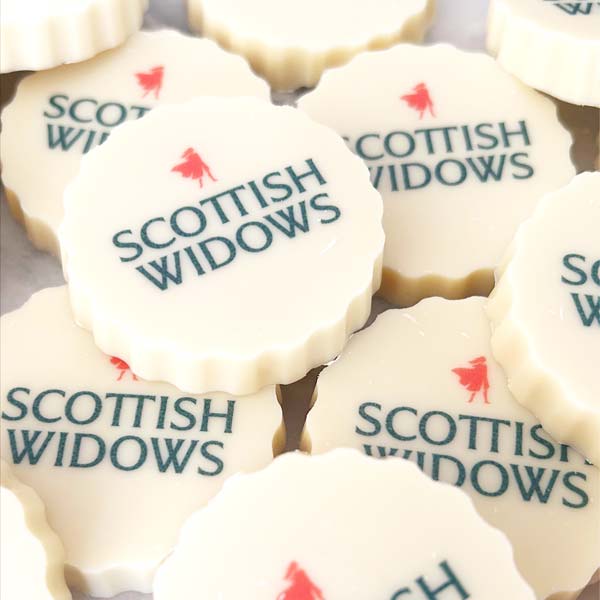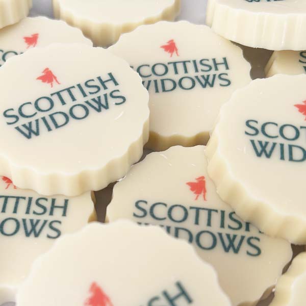 Delicious Belgian chocolate discs personalised with your logo, branding, message, monogram or QR code. Individually wrapped and printed with edible ink in white, milk or dark chocolate. Minimum order: 10. Made to order – upload your design today!