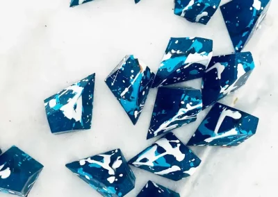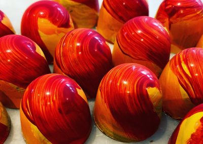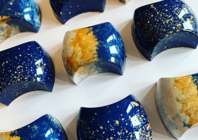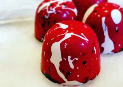 Luxurious hand-painted Belgian chocolates in bold colours and stunning shapes.
