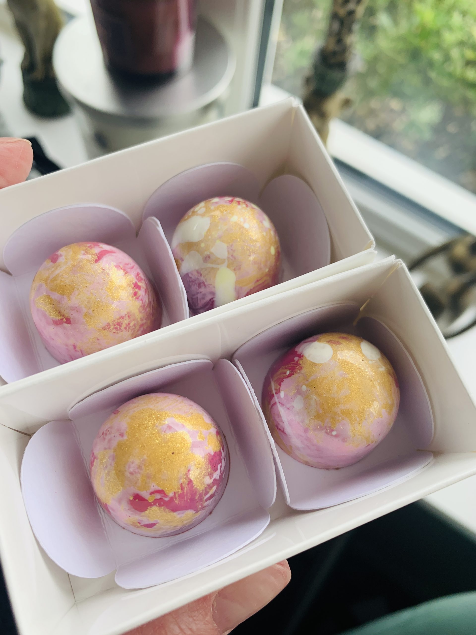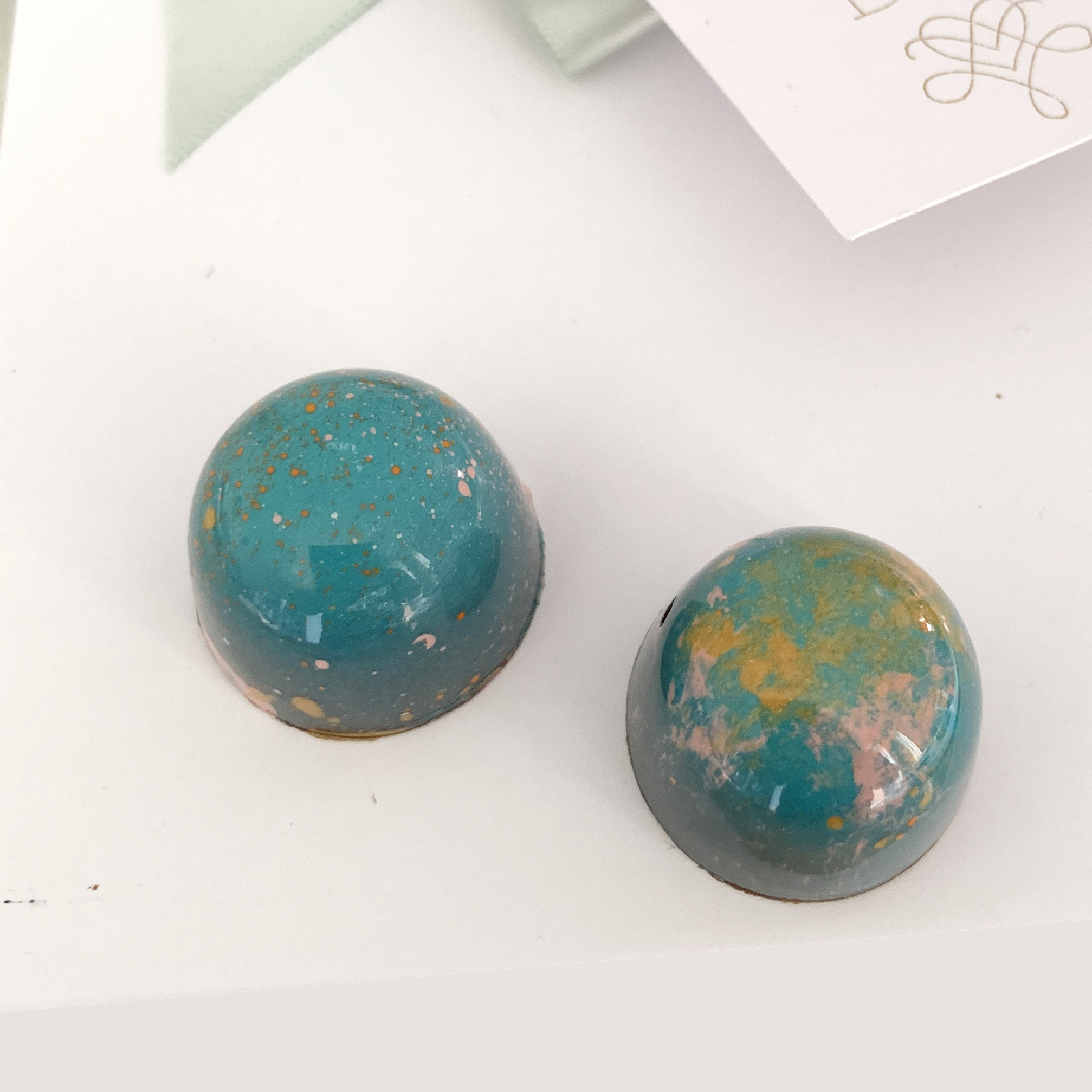 A luxury collection of hand-painted chocolates in wedding coordinating tones and colours, crafted for Wedding gifting, Wedding favours, Bridesmaid gifts  and Engagements.