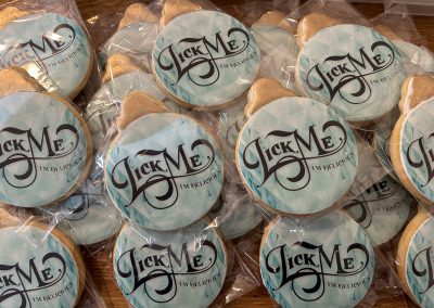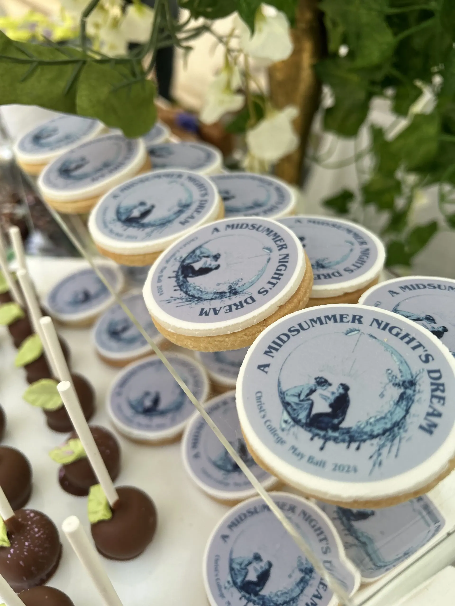 Our biscuits are designed to match your event, branding or specification. We will design a biscuit for you or you can choose a look from the extensive images in our gallery. We are able to print on icing or white chocolate with names or logos.