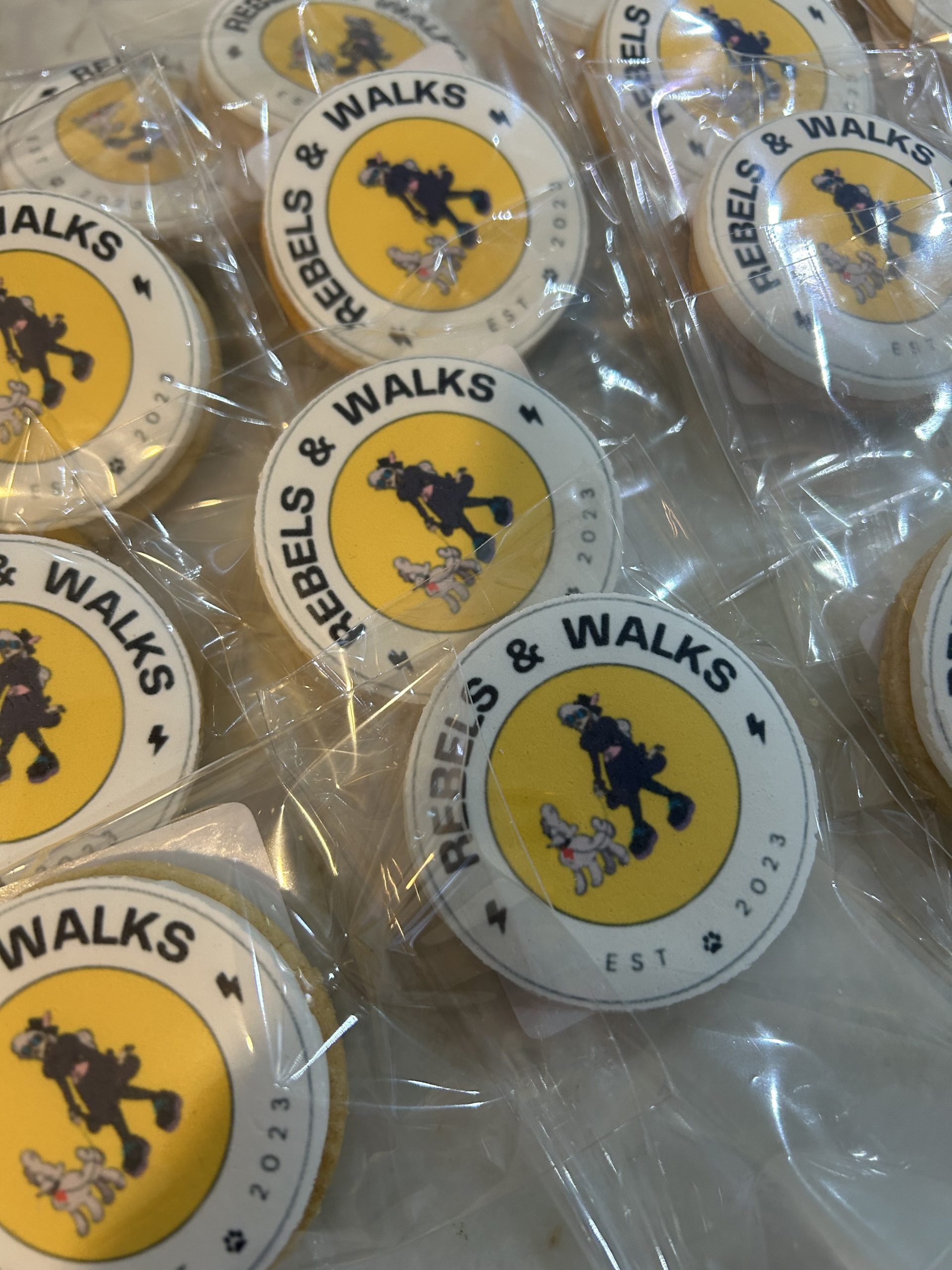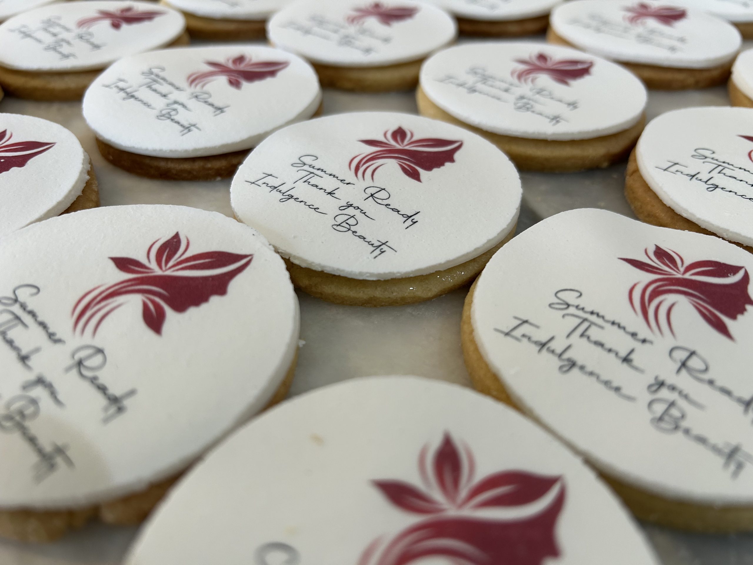 Our biscuits are printed with edible inks over a biscuit base, designed to your specification. You can either send an image or upload you logo to ensure a perfect match. We can print on Royal Icing or fondant (vegan) Alternatively we can hand pipe for a bespoke look. Please note vegan options are available at an extra cost. Contact us before ordering if you have any specific requests.
