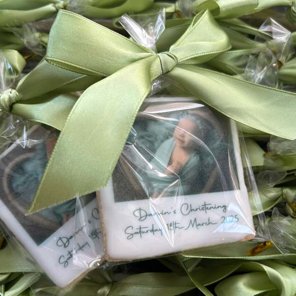 Biscuits can be either individually wrapped or arranged in gift boxes. They make a perfect wedding favour with your initials.